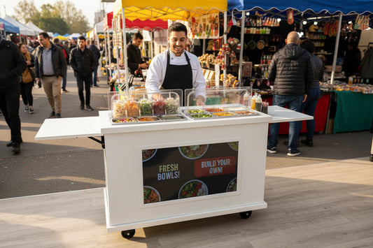 Mobile, folding Event Catering Cart - Cheese and Charcuterie cart with built in Monitor screen